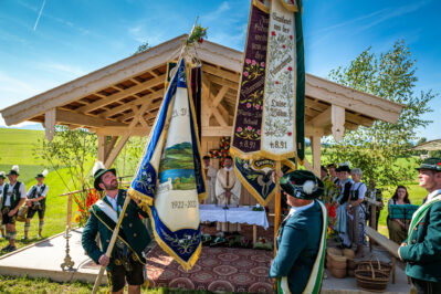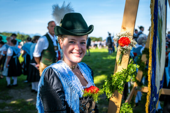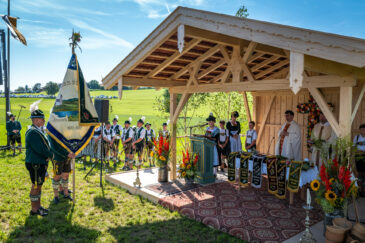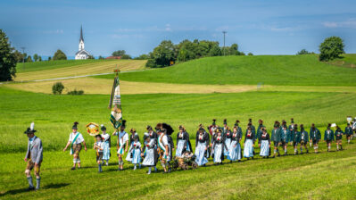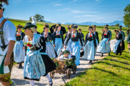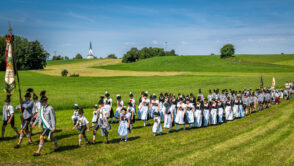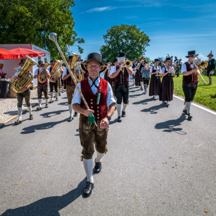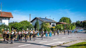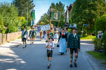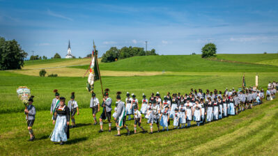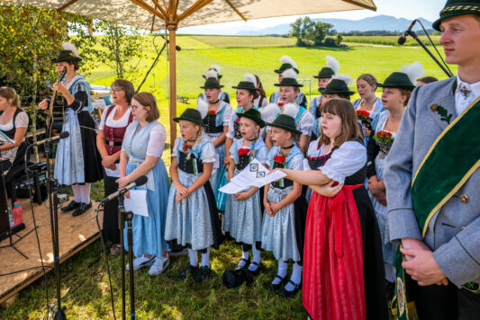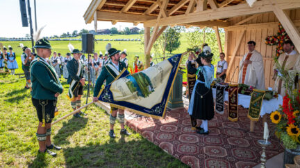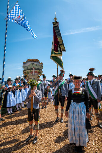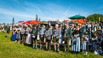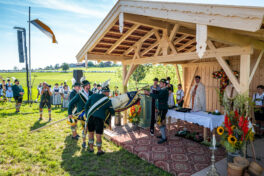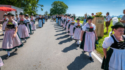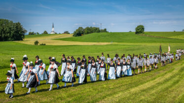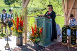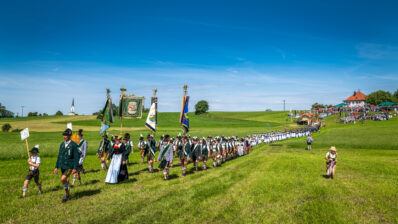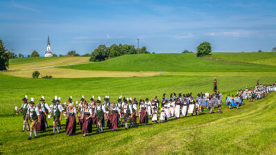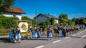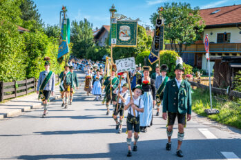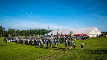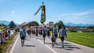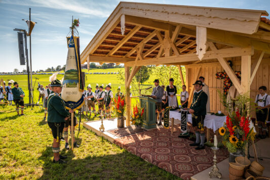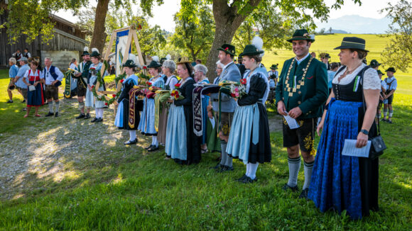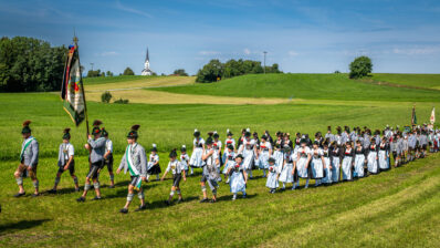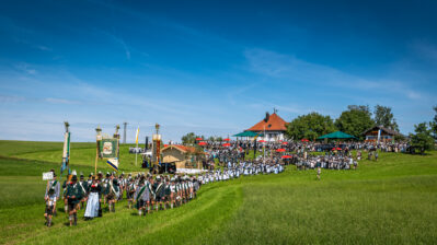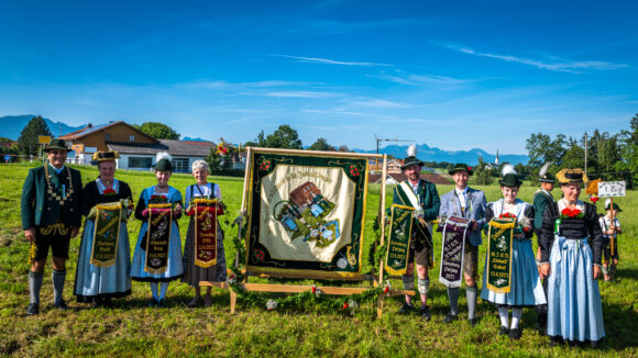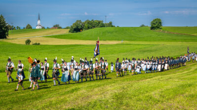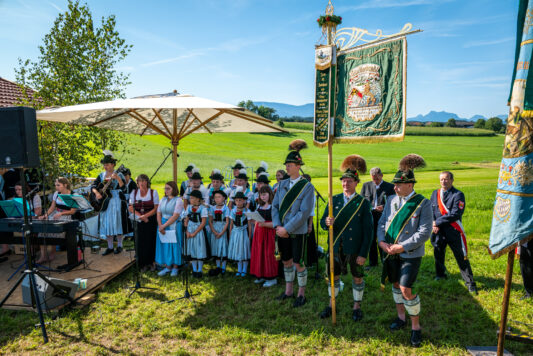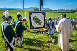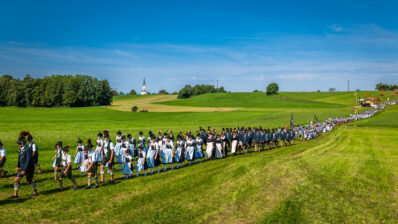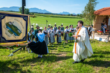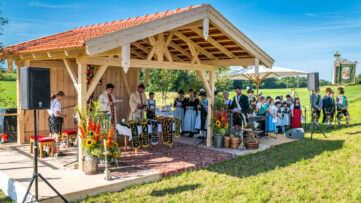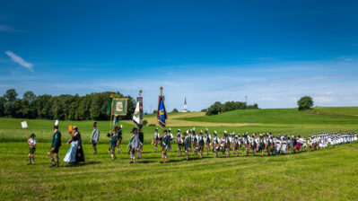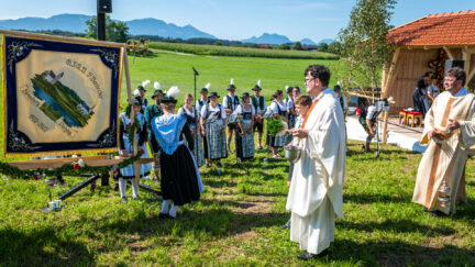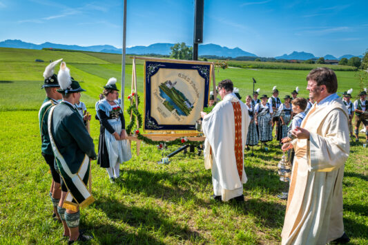 Höhepunkt des Jubiläums „100 Jahre Trachtenverein Bachecker Hirnsberg-Pietzing“ waren ein Sonntags-Gottesdienst auf freiem Felde, die dabei integrierte Weihe einer neuen Fahne sowie ein Festzug zur gemeinsamen Einkehr im Festzelt bei Moosen.