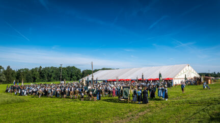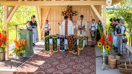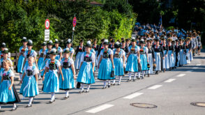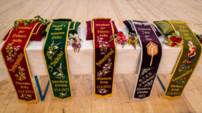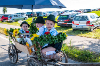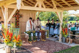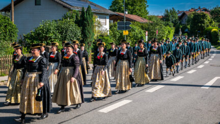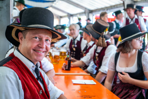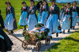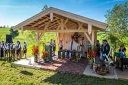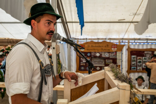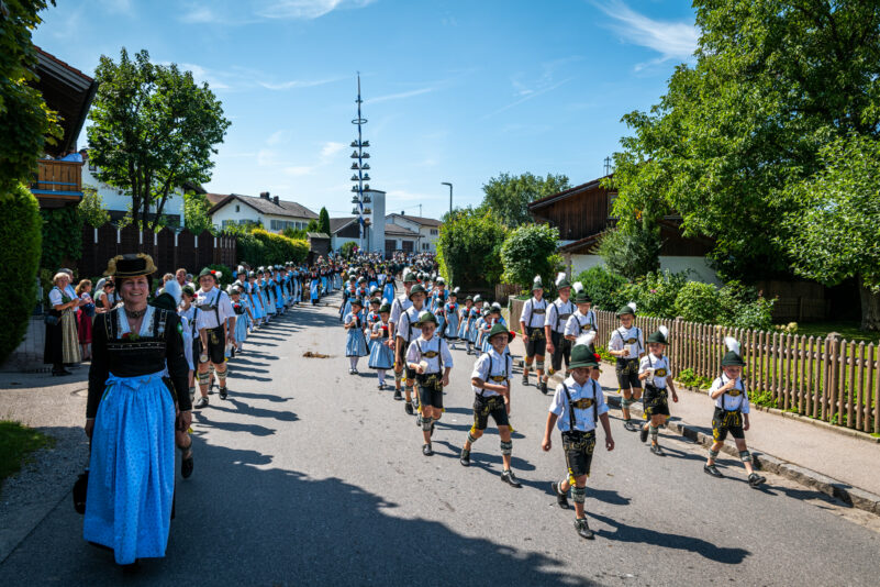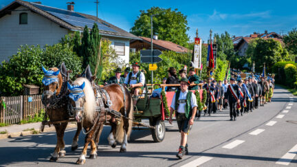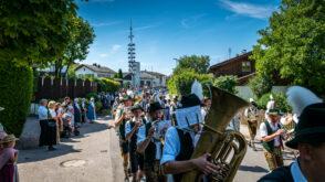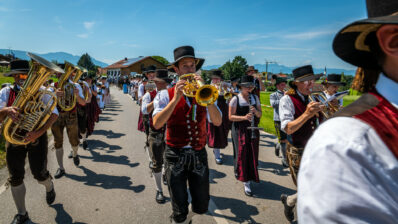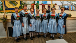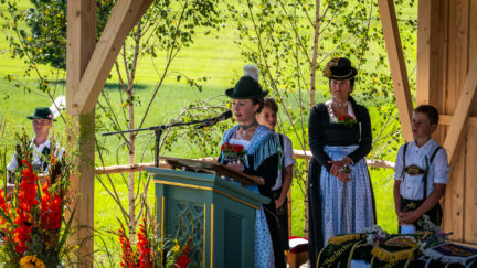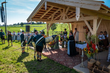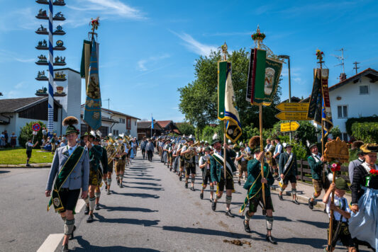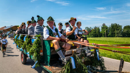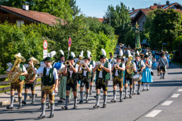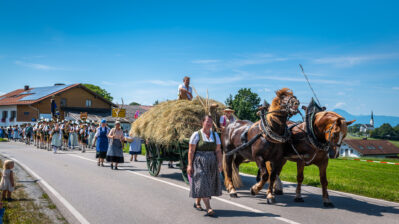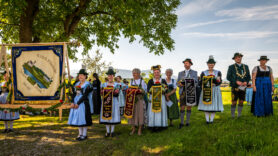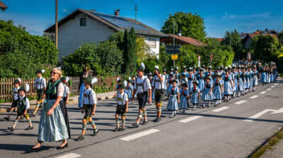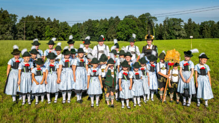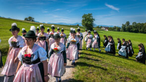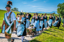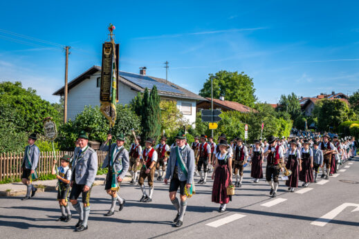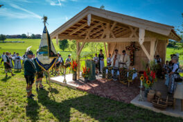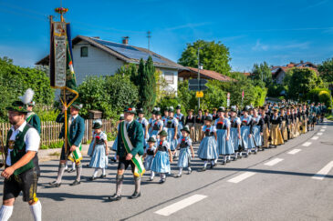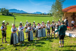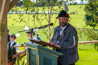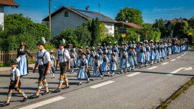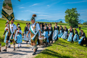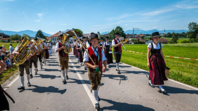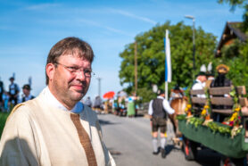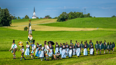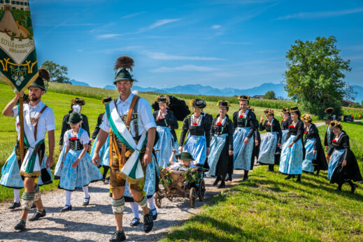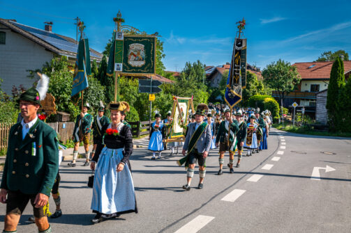 Höhepunkt des Jubiläums „100 Jahre Trachtenverein Bachecker Hirnsberg-Pietzing“ waren ein Sonntags-Gottesdienst auf freiem Felde, die dabei integrierte Weihe einer neuen Fahne sowie ein Festzug zur gemeinsamen Einkehr im Festzelt bei Moosen.