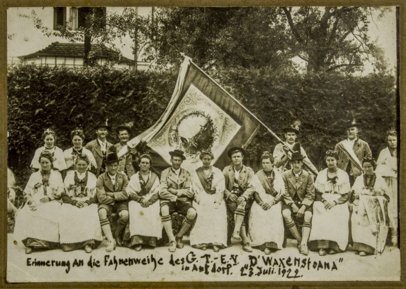 Der GTEV „D‘ Waxnstoana“ Antdorf kann dieses Jahr voller Stolz auf eine 100-jährige Vereinsgeschichte zurückblicken. Dies zum Anlass nehmend laden die Antdorfer Trachtler am letzten Märzwochenende zu einer historischen Bilder- und Geschichtenausstellung ins Trachtenheim ein. Ausgestellt werden Fotos und alte Trachten aus den letzten 100 Jahren des Vereins sowie die alte Vereinsfahne mit ihren Fahnenbändern. Die ältere Generation der Vereinsmitglieder erzählt Geschichten von früher, die auf Band aufgenommen wurden.