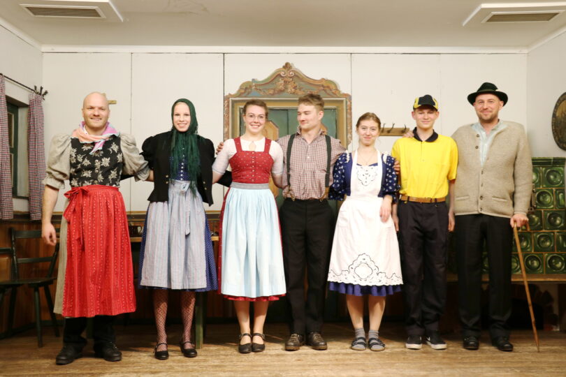 Nach zehn Jahren löste sich der Verein auf und übergab das Inventar und das Vermögen an den Trachtenverein, der seitdem die Theater-Tradition aufrecht erhält. In all den Jahren haben sich immer wieder junge Burschen und Mädchen gefunden, die Lust am Komödiespielen hatten und seit Jahren und Jahrzehnten auf der Bühne der Wildenwarter Schlosswirtschaft stehen. Damit es weitergehen möge, studierte Lambert Huber mit sechs Neulingen einen Einakter für den Vereinshoagascht ein und – das Experiment ist geglückt. Die Besucher des Vereinshoagascht – unter ihnen die stellvertretende Vorsitzende des Chiemgau-Alpenverband Lisbeth Tengler – applaudierten lange und ausdauernd, Lambert Huber war mit den Leistungen seine Schauspielanfänger voll zufrieden. Die neue Theaterleiterin Sabine Riedl kann mit diesen sechs Neuen auf ein erweitertes Ensemble zurückgreifen und das neue Stück im Spätherbst entsprechend besetzen. Sabine Riedl übernahm das Amt von ihrer Vorgängerin Silvia Riepertinger, die nach 18 Jahren in der Vorstandschaft ihre Arbeit als Theaterleiterin beendete. Ebenfalls aus der Vorstandschaft der „Lustigen Wildenwarter“ ausgeschieden sind Jugendleiter Franz Bauer und Dirndlvertreterin Martina Huber nach zehn Jahren. Sie bleibt als Teil der „Huber-Dirndl“ und Mitglied der Gaugruppe des Chiemgau-Alpenverbands der Trachtensache weiter eng verbunden, wie der Vorsitzende Helmut Freund bei der Verabschiedung betonte. Es sei jedem gestattet auch einmal eine Auszeit vom Vereinsausschuss zu nehmen.