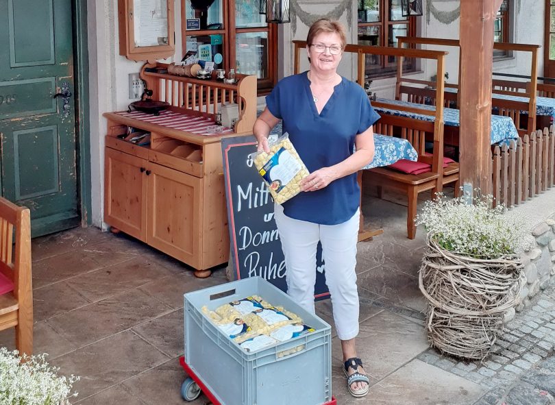 Nocken oder Nockerln, italienisch Gnocchi, sind eiförmige oder spätzleähnlich geformte Teigmassen aus der guten Alpenküche. 100 Kilogramm dieser köstlichen Speise hat Entenwirtin Kathi Schrödl vom Samerberg in diesen Tagen an die Chiemseer Tafel in Prien spendiert, dazu Tafel-Mitarbeiter Uwe Merklein: „Über diese Spende haben wir uns besonders gefreut, weil sie für unsere Kunden eine wohlschmeckende und willkommene Abwechslung ist“.