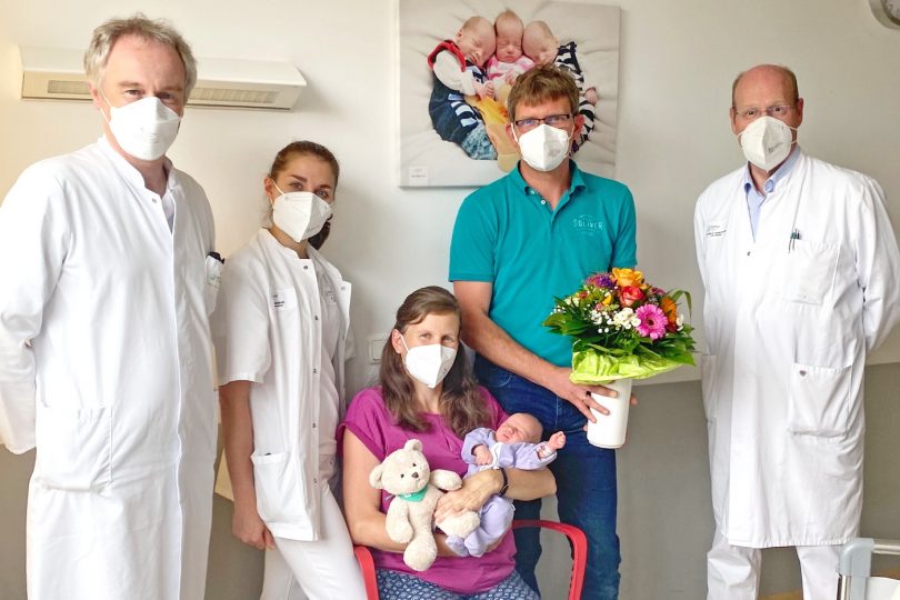 Das Team der Klinik für Gynäkologie und Geburtshilfe des RoMed Klinikums gratulierte zum Familienglück mit einem Blumenstrauß und dem RoMed-Teddybären. Mit rund 2000 Geburten im Jahr gehört RoMed Rosenheim zu den 25 größten Geburtskliniken in Bayern. Das RoMed Klinikum Rosenheim ist im Verbund mit den Klinikum Traunstein das einzige Perinatalzentrum der höchsten Versorgungsstufe südöstlich von München.