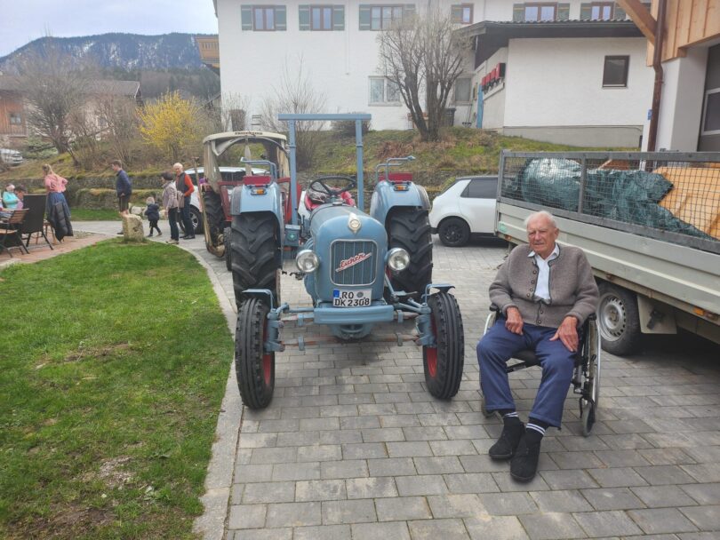 Im Alter von 101 Jahren machte sich Xaver Stadler aus Grainbach noch mit seinem Enkel und seinem Porsche-Bulldog auf die Reise zum Samerberger Bulldogtreffen . Zu seinem nunmehr 102. Geburtstag wurde der älteste Einwohner der Gemeinde Samerberg und Ehren-Dirigent der Musikkapelle Samerberg von den Mitgliedern des örtlichen Bulldogvereins mit deren Traktoren besucht. Zusammen mit Trachtenvorständin Ramona Sattlberger vom Trachtenverein Hochries-Samerberg überbrachten sie die Glückwünsche der Vereine.