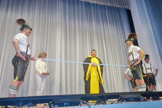 Zwei Jahre lang bereitete der Münchner Trachtenverein mit seinen 130 Mitgliedern den Jubiläumstag bevor. Drei Höhepunkte brachte dieser Tag hervor: der erste war ein Gottesdienst in der Theatinerkirche (mit Volksmusik, Blasmusik und Volksgesang), mit über 30 Fahnenabordnungen und Standarten sowie mit Seiner Exzellenz Weihbischof Rupert Graf zu Stolberg, der von Pater Josef aus Harlaching und von Pfarrer Josef Steindlmüller, einem gebürtigen Chiemgauer assistiert wurde. Im Rahmen des Gottesdienstes wurde auch ein Fahnenband gesegnet, das der Chiemgau-Alpenverband dem Münchner Verein zum Geschenk machte. Der zweite Teil des großen Erlebnistages war ein Festzug vom Odeonsplatz über die Brienner Straße und über den Königsplatz bis zum Stiglmaierplatz. Daran beteiligten sich neben den Chiemgauer Trachtlern auch Münchner Vereine und Blaskapellen. Am Abend präsentierte der GTEV „Chiemgauer“ München im voll besetzten Löwenbräukeller die Geschichte seines Vereins und die der Stadt München in Form eines Volkstheaters. Für diesen Abend, den Christian Schumann mit einer Vielzahl an musikalischen und tanzenden Vereinsmitgliedern einstudiert hatte, gab es zum Abschluss stehenden Applaus. Lob und Anerkennung erhielten die Münchner Trachtler ob ihres starken Vereins und ihrer perfekten Organisation von vielen Seiten. Weihbischof Rupert Graf zu Stolberg sagte unter anderem: „Vor 125 Jahren sind Chiemgauer aus der Not in die Stadt gekommen, die Welt und die Lebensumstände haben sich seither verändert. Ihr aber seid lebendig geblieben, weil ihr immer einen gemeinschaftlichen Geist gepflegt und weil ihr Brauchtum und Glauben zusammen gelebt habt. Es wird euch und uns allen weiterhin gut tun, den Kontakt mit dem Herrgott zu pflegen“. Gauvorstand Michael Huber vom Chiemgau-Alpenverband sagte in seinem Grußwort: „Vor 125 Jahren konnten nur gebürtige Chiemgauer Mitglied bei der Gründungs-Landsmannschaft werden, damals wardt ihr eine Außenstelle, doch heute seid Ihr mittendrinnen in der großen Chiemgauer Trachtler-Familie“. Und MdL Josef Schmid als Schirmherr würdigte die Chiemgauer Trachtler in München ob ihrer Aktivitäten mit den Worten: „Tracht ist weltweit der beste Ausweis für die Zuordnung zu Land und Bräuchen. Zukunft braucht Herkunft – dieser Grundsatz wird von euch ehrlich und anschaulich gelebt“. Unter den vielen Ehrengästen befand sich auch Landesvorsitzender Max Bertl vom Bayerischen Trachtenverband. Auch er erhob sich von den Plätzen, als der Festabend zu Ende war als Zeichen dafür, dass die Chiemgauer Trachtler in München ob ihres Jubiläums über sich hinausgewachsen sind. An Programm waren neben den Vorständen Florian Hähle und Alexander Seemann weitere Mitglieder der Vorstandschaft, das “Münchner Kindl” sowie als Ansager Regina Wallner und Christian Härtl beteiligt. Zwischen den Szenenbildern zur Geschichte der Stadt München traten noch auf die Kindergruppe des GTEV Chiemgauer München, die Schäfflertanzgruppe 2019 des Fachvereins der Schäffler Münchens, die Aktiven aus den Chiemgauer Trachtenvereinen, die Priener Goaßlschnalzer, die Gaugruppe und die Gaujugendgruppe des Chiemgau-Alpenverbandes, die Aktiven der Münchner und ihrer Priener Paten sowie die Rottauer Tanzlmusi. Als Patenverein gratulierte der Trachtenverein Prien mit einer Abordnung unter der Leitung von stellvertretendem Vorstand Klaus Löhmann.