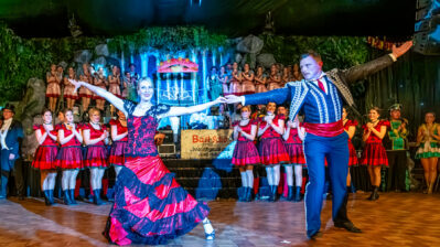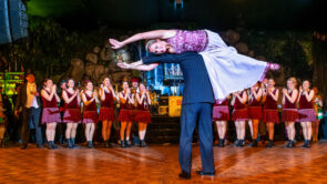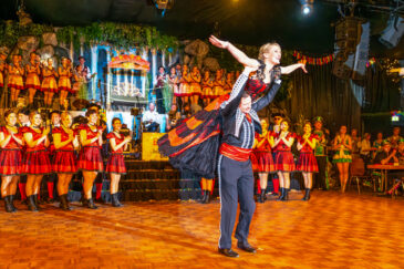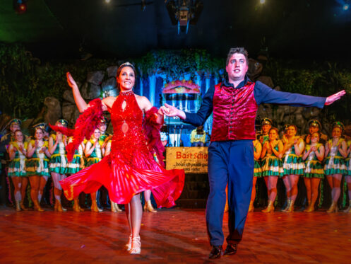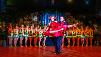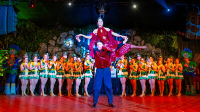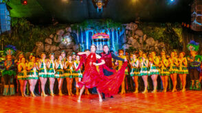 Das Programm springt in Tempo und Stil. Türkise Kostüme, goldene Fransen, ein Hauch Orient – Hände gefaltet zum Show-„Gruß“, Lächeln direkt ins Publikum, als wäre der Saal eine einzige Nahaufnahme. Dann wieder Samba-Farben, frecher, schneller, körperlicher im Ausdruck. Tanz ist hier nicht Dekoration, sondern Kommunikation: Blickkontakt, kurze Posen, ein Spiel mit dem Raum.