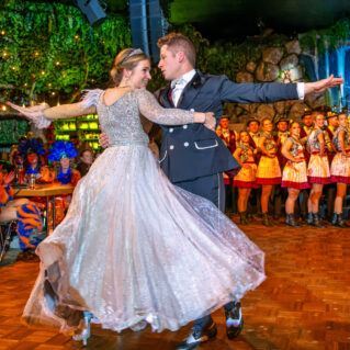 Prinzenwalzer: Glitzer, Drehung, Stolz: Dann der Kontrast: Prinzenpaar auf der Fläche, Glitzerkleid, Krone, der Moment, in dem der Saal kurz leiser wird. Im Walzer wirkt die Zeit plötzlich gedehnt – die Bewegung wird groß, das Kleid zieht Kreise, der Tanz ist gleichzeitig elegant und kraftvoll. Und genau da trifft es einen emotional: Diese Tradition hat in Neubeuern nicht nur eine Form, sondern ein Niveau. Ein Foto zeigt den Moment der Drehung, das Kleid wie eine helle Wolke – und in einer anderen Szene wird daraus pure Energie: ein angehobenes Bein, die Bewegung fast überzeichnet, aber sauber gehalten. Das ist nicht „Ballromantik“. Das ist Leistung, die nach außen leicht aussieht, aber innen Arbeit ist.