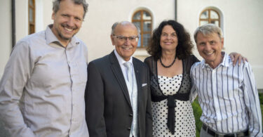 „Unsere Gründerväter bestanden allerdings auf eine Fahnenweihe, da der Ortsgeistliche wegen der Lederhosen und den nackten Füssen eine Weihe wie auch andernorts in Bayern in der Kirche ablehnte. Deswegen machte man sich auf den Weg ins österreichische Wien“ – so der Vorstand und er fügte hinzu: „Als sie Zuhause wieder ankamen und ihrem Pfarrer die Segnungsurkunde zeigten, hat dieser die Urkunde vor den Augen der Trachtenverantwortlichen zerrissen“. Aus dieser Erinnerung heraus bedankte sich Martin Schober bei den Vertretern der Kirche, dass es heute eine echt gute Zusammenarbeit gibt. Dies bestätigte auch kirchlicherseits Diakon Günter Schmitzberger, der zusammen mit Pfarrer Robert Baumgartner den Jubiläumsgottesdienst zelebrierte. Ein gemeinsamer Dank der Geistlichkeit und des Trachtenvereins galt für die musikalische Gestaltung der Musikkapelle Samerberg unter der Leitung von Benedikt Paul sowie den Leserinnen der Fürbitten, diese kamen aus verschiedenen Generationen und sie trugen ihre Anliegen auf gut „boarisch“ vor. Ein besonderes „Vergelt´s Gott“ galt der Mesnerfamilie Maurer, sie bauten den Freialtar neben dem Leichenhaus auf und sorgten dafür, dass dieser Ort festlich geschmückt war.