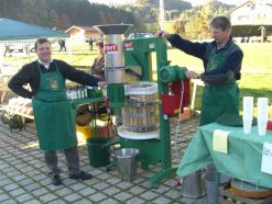 - Simon Mayer und Georg Riedl bei der Obstpresse