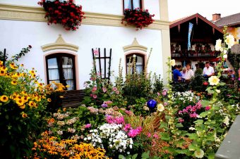 Ein weiterer Gratulant in der umfangreichen Festschrift, die zum Erntedankfest herauskommt und dann nach dem Gottesdienst beim Standkonzert der Musikkapelle Samerberg auf dem Dorfplatz verteilt wird, ist Rainer Steidle, Vorsitzender vom Kreisverband für Gartenbau und Landschaftspflege Rosenheim e. V. mit den Worten: „Euer Engagement für Kinder und Jugendliche in Kindergarten, Schule oder Ferienprogramm legt dafür den Grundstein und stärkt die Verbundenheit mit der Heimat. Wir vom Kreisverband für Gartenbau und Landespflege Rosenheim e.V. freuen uns darüber sehr. Die ehrenamtliche Tätigkeit unserer Gartenbauvereine ist von großer Wichtigkeit und wird in Zukunft gerade für Klima, Umweltschutz und unsere Gesellschaft an Bedeutung gewinnen“. Bürgermeister Georg Huber von der Gemeinde Samerberg würdigt in seinem Grußwort alle Landwirte und auch die übrigen Haus- und Grundbesitzer für ihren Blumenschmuck, der ein Höhepunkt für den bunten Samerberg ist und er fügt hinzu: „Durch den Blumenschmuckwettbewerb wurden die zahlreichen Mitglieder motiviert, ihre Häuser und Vorgärten mit Liebe zu hegen und zu pflegen. Ihr alle habt damit den Samerberg schöner gemacht!“.