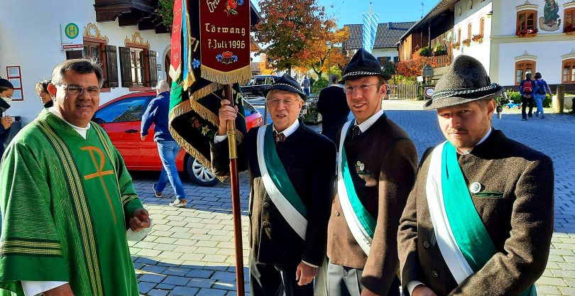 In kleinem Rahmen aber mit einem feierlichem Gottesdienst begingen am 24. Oktober die Törwanger Schützen das 125- jährige Vereinsjubiläum. Diakon Günter Schmitzberger weihte ein Fahnenband und fand in seiner Predigt aufmunternde Worte für den Verein, in dieser schwierigen Zeit den Zusammenhalt zu stärken. Musikalisch umrahmt wurde der