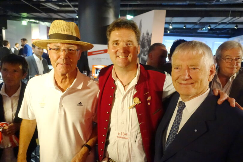 Erinnerungs-Foto: Bei den Feierlichkeiten 2016 zum 1ojährigen Jubiläum „WM 2006 in Deutschland“ gab es auch einen Festakt in der Allianz Arena. Hierzu war Hans Gehrlein (Mi.) eingeladen – das Foto zeigt ihn zusammen mit Franz Beckenbauer und mit dem damaligen Innen- und Sport-Minister Otto Schily (re.).