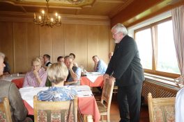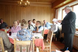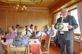 Ein Schwerpunkt-Thema im abgelaufenen Jahr waren die Bienen und Imker mit verschiedenen Veranstaltungen und Maßnahmen. Der heuer erstmals durchgeführte Bienenwettbewerb soll aufgrund seines Erfolgs wiederholt werden, die Ausschreibungen wird es in Bälde geben. Gelobt wurden in diesem Zusammenhang die Landwirte für das Anlegen von blütenreichen Blumenwiesen, kritisiert wurde, dass entlang mancher Straßen diese für Bienen und Insekten wichtigen Streifen zu früh gemäht wurden. Ein weiteres wichtiges Thema von RegRo ist der Bauernherbst, der im Landkreis Rosenheim am Tag nach dem Herbstfest-Ende beginnt und bis Leonhardi dauert. Derzeit werden alle für diesen Zeitraum relevanten Veranstaltungen in Abstimmung mit den Gemeinden und Tourist-Informationen erfasst und in einem Bauernherbst-Kalender veröffentlicht. Die offizielle Eröffnung des Bauernherbstes 2018 (mit Vorstellung der neuen Bauernherbst-Wurst und des heurigen Bauernherbst-Brotes) wird am Montag, 10.September beim Hotel Fletzinger in Wasserburg am Inn sein, dabei soll auch dessen landwirtschaftliche Fischzucht vorgestellt werden. Landrat Wolfgang Berthaler würdigte in seinem Grußwort die Anstrengungen von RegRo. „Ihr bündelt die Anbieter unter anderem von Milch, Honig und Eiern und ihr tragt damit mit dazu bei, dass der Landkreis Rosenheim innerhalb Deutschlands eine sehr hohe Beliebtheit hat, wie jüngst eine bundesweite Umfrage ergeben hat“, so der Landrat. RegRo hat sich zur Aufgabe gemacht, heimische Produkte mit einer Haltbarkeit von etwa einem halben Jahr in die Verkaufsläden zu bringen; derzeit werden rund 100 verschiedene Artikel angeboten. Dabei gilt es Markt-Schwankungen wie bei den rückläufigen Anbauten von Kartoffeln in der Region mit Zukäufen von außerhalb des Landkreises auszugleichen. Unterstützt wird RegRo von vielen Sponsoren, unter anderem von der Volksbank-Raiffeisenbank Rosenheim-Chiemsee mit der von ihr initiierten Direktvermarktungs-App „Frisch vom Hof“, die derzeit auf insgesamt 187 Direktvermarkter und 18 Bauernmärkte in den Landkreisen Rosenheim und Traunstein hinweist. Abschließend bedankte sich Sebastian Friesinger beim Bayerischen Bauernverband (u.a. Kassenführung), beim Amt für Landwirtschaft, beim Tourismusverband Chiemsee-Alpenland sowie bei Ehren-Landesbäuerin Annemarie Biechl für ihre tatkräftige Mitarbeit bei der Vereinsführung. Wirt Georg Kaltner vom Gasthof „Zur schönen Aussicht“ stellte sein Haus vor, dieses ist seit 1632 in Familienbesitz, hat 30 Mitarbeiter, insgesamt 340 Sitzplätze drinnen und draußen, 15 Doppelzimmer sowie eine regional-bayerische Küche. „Kleinhöhenrain bietet zudem einen Kreuzweg und weitere Wanderwege, einen Bienenlehrpfad (mit zwei Kilometer Rundweg ideal für Familien), ein Bienen-Kino und ein Kirchlein St. Bartholomäus“, so der Wirt von Kleinhöhenrain, das auch gerne als der Balkon des Landkreises Rosenheim bezeichnet wird.