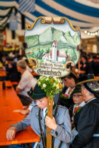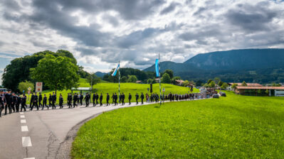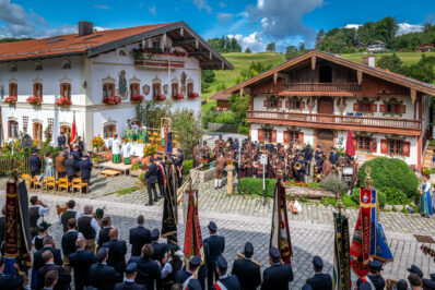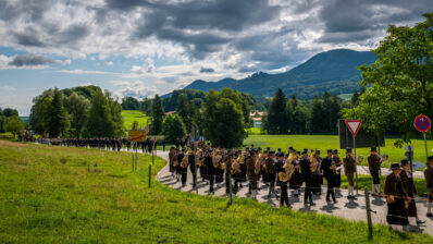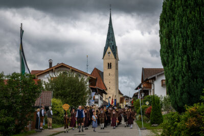 Nach dem Gottesdienst ging es mit einem Festzug, angeführt von der Musikkapelle Samerberg, mit der Musikkapelle Nußdorf und Rohrdorf, sowie den Ortsvereinen und vielen Feuerwehrvereinen aus der Umgebung zum geselligen Beisammensein ins Festzelt.