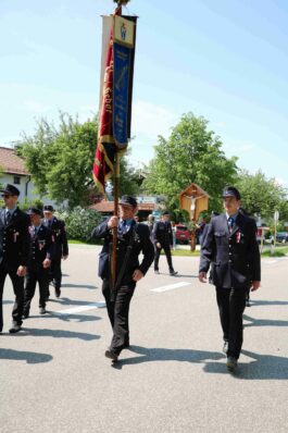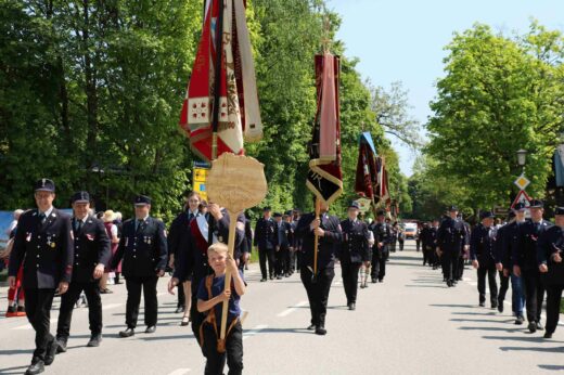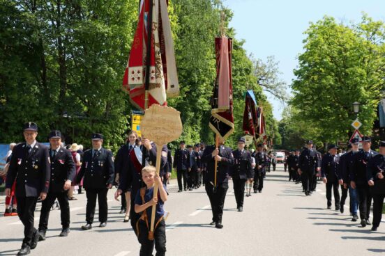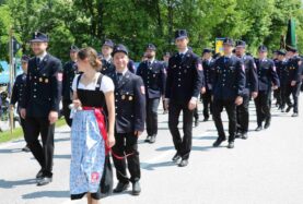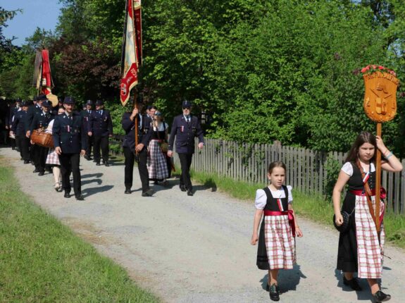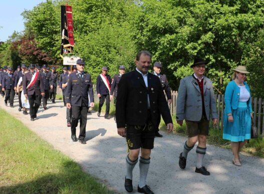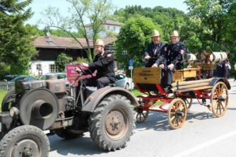 Der Festgottesdienst schloss mit der Bayernhymne und dann zog der Festzug durchs geschmückte Dorf. Mit dem Festverein an der Spitze ging es auf die Hauptstraße bis zum Rathaus, dem Bürgermeister und den Gemeinderäten folgten die Dorfvereine und die Feuerwehrvereine der Region. Die Umrathshauser und die Wildenwarter führten die alten Spritzen aus der Zeit vor dem Ersten Weltkrieg mit.