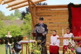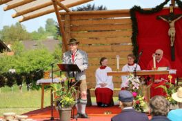 Bürgermeister Daniel Mair bei seiner Ansprache im Feldaltar an der Westerndorfer Kapelle auf der Südseite von Frasdorf