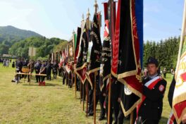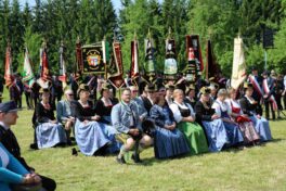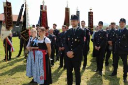 38 Fahnen der Feuerwehren aus der Region und der Ortsvereine standen rund um den Feldaltar auf der Südseite von Frasdorf