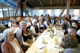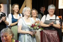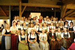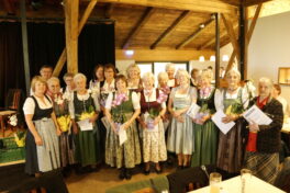 Die Kirche war bis auf den letzten Platz besetzt. Der Projektchor, der extra für die heurigen Kirchengeburtstage am Samerberg gegründet wurde, trat dabei zum ersten Mal auf. Insgesamt 35 Chormitglieder füllten die gesamte Empore und sorgten dabei für einige Gänsehautmomente. Priesterlicher Leiter der Seelsorge, Kurat Tobias Pastötter betonte, dass der Glaube und die Gemeinschaft verbinden. Nirgends sei dies besser zu erkennen, als in einem Verein. Leiter des Pfarrverbands, Diakon Günter Schmitzberger, bedankte sich bei der Frauengemeinschaft für die großartige Zusammenarbeit und betonte, wie wichtig das christliche Engagement der Samerberger Frauen im Gemeindeleben sei. Im Anschluss an den Gottesdienst zogen die 220 Frauen gemeinsam in den benachbarten Moarhof und feierten dort ausgiebig ihr 150-jähriges Bestehen. Auch erster Bürgermeister Georg Huber war unter den Gratulanten und bedankte sich für die gute Zusammenarbeit mit der Gemeinde und das großartige Engagement gegenüber Jung und Alt. Er erinnere sich noch gut, wie die Frauengemeinschaft mit ihrem Adventsbasar ganz klein angefangen habe und mittlerweile die Samer Halle füllt. Auch der Seniorennachmittag und das Weiberkranzl seien am Samerberg nicht mehr wegzudenken. Er wünschte den Frauen weiterhin so viel Erfolg wie bisher und unterstützte den Verein von Seiten der Gemeinde mit einer kleinen Finanzspritze.