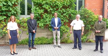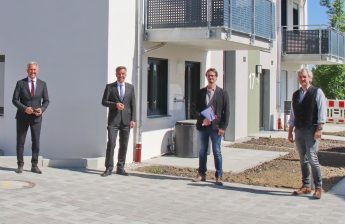 Vor Haus 2 (von links): Karl Seidl, Landrat Otto Lederer, Architekt Florian Schindler, Architekt Oliver Schweder.