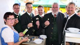 Foto/s: Rainer Nitzsche – 1. Bei der Bauernherbst-Eröffnung mit Wurst- und Brot-Präsentation von links: Theresa Albrecht, Sebastian Friesinger, Hubert Stephl und Sepp Messerer. 2. RegRo-Vorsitzender Sebastian Friesinger und Landrat Otto Lederer – weitere Eindrücke