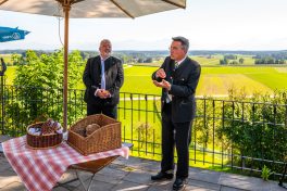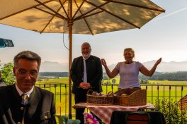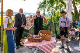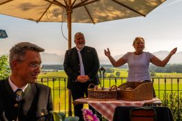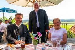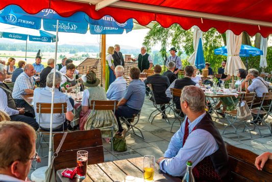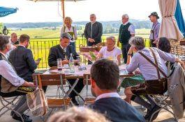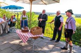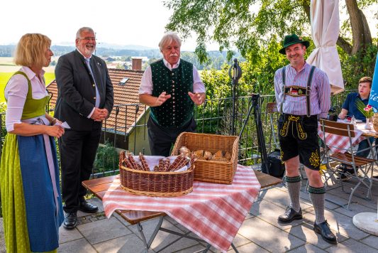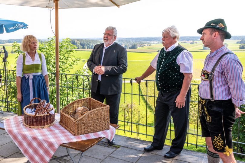 Bei schönstem Spätsommerwetter und bei herrlichen Ausblicken von der Terrasse des Gasthofes „Zur Schönen Aussicht“ in Höslwang konnte der inzwischen 18. Bauernherbst im Rosenheimer Land eröffnet werden. Die wichtigste Botschaft dabei war: trotz Corona, oder gerade wegen Corona ist es von hoher Bedeutung und Wichtigkeit, dass heimische Lebensmittel und regionale Verarbeitungs- und Vermarktungsabfolgen gefördert werden. In diesem Bemühen finden der Verein zur Förderung der Regionalentwicklung im Raum Rosenheim (RegRo) vielfältige Unterstützung.