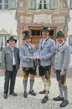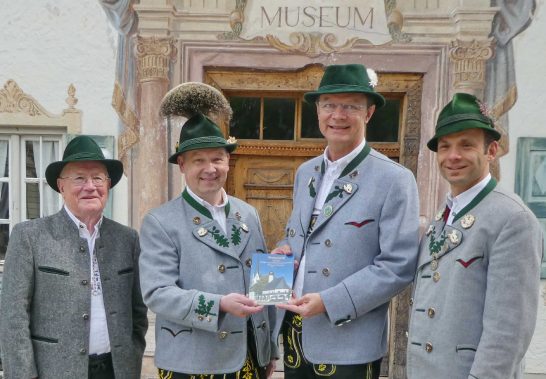 Vor genau 180 Jahren wurde in Prien ein Veteranenverein gegründet, um Heimkehrern aus den napoleonischen Kriegen oder deren Hinterbliebene entsprechende Unterstützung zu bieten. Zwar ist diese Form der Unterstützung dank staatlicher Einrichtungen inzwischen entfallen. Der Verein übernimmt aber bis heute die Aufgabe in Form jährlicher Gedenktage, um an die Schrecken der Kriege zu erinnern und zum Frieden zu mahnen. Zudem wird auch regelmäßig für Kriegsgräber gesammelt. Ihren 180. Gründungsfest begeht die Priener Krieger- und Soldatenkameradschaft in diesem Jahr mit einer Festwoche vom 24. bis 28. Mai und mit dem Bezirkstreffen am Sonntag, 27. Mai als Höhepunkt. Teil der Vorbereitungen ist die Erstellung einer Chronik, die mit Texten von Schriftführer Michael Feßler und mit Bildern von Anita Berger in der Priener Druckerei Rieder erstellt wurde. Das erste Exemplar der 34 Seiten starken Chronik übergab Michael Feßler im Beisein von Ehrenvorsitzenden Michael Anner senior und Erstem Vorsitzenden Georg Fischer junior vor dem Priener Heimatmuseum an Schirmherrn und Bürgermeister Jürgen Seifert. Dieser würdigte bei der ersten Durchsicht das für alle Priener interessante Geschichts-Nachschlagewerk und versprach die gemeindliche Unterstützung bei den weiteren Festvorbereitungen. Alle 180 Jahre sind in der Broschüre chronologisch und mit Dokumenten mit ihren kriegerischen Tiefen und mit der steten Vereinsentwicklung festgehalten.