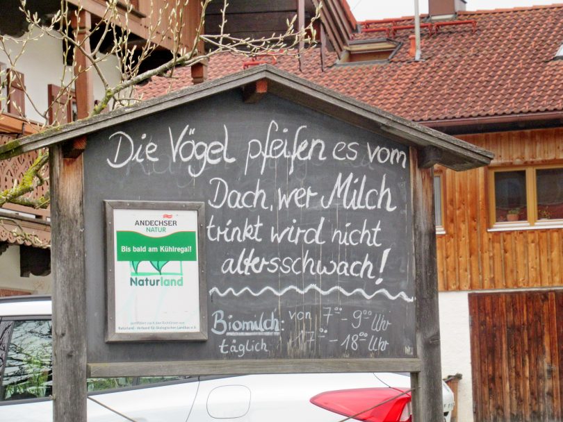 “Die Vögel pfeifen es vom Dach, wer Milch trinkt wird nicht altersschwach!” – vielleicht ist dieser Bio-Milch-Tipp eines Bauernhofes in Flintsbach auch ein Tipp für richtige Ernährungsweisen in Corona-Zeiten. In jedem Fall: Milch schmeckt und tut gut.