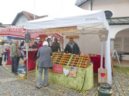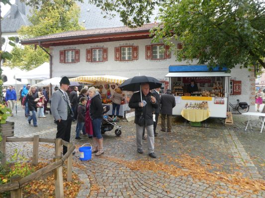 Einen Erntedankmarkt nach traditioneller Art veranstaltete PrienPartner e.V. am Erntedank-Sonntag auf dem Priener Marktplatz. Das Motto “Für Handgemachtes” bezog sich dabei ebenso auf die Produkte der Direktvermarkter und Produzenten aus der Region, wie auch auf das ausgesuchte, heimische Handwerk und Kunsthandwerk. Bei gemischter Witterung -mal mit und mal ohne Regenschirme- fanden sich viele Priener und Gäste ein, um über den Marktplatz zu bummeln. Zum umfassenden Angebot des Markttages gehörten auch Kunstdarbietungen auf dem Wendelsteinplatz und am Nachmittag offene Priener Geschäfte sowie die Möglichkeiten zum Ausstellungsbesuch in der Galerie im Alten Rathaus (Heinrich & Katharina Kirchner) und im Priener Heimatmuseum (Ludwig Thoma).