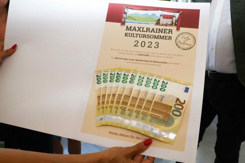Dieses Jahr war die Summe, die Theresa Englhart, stellvertretende Vorsitzende des Kulturfördervereins Mangfalltal in Maxlrain e.V. (Bild Mitte), für die Rosenheimer Aktion für das Leben dabei hatte, eine Überraschung.