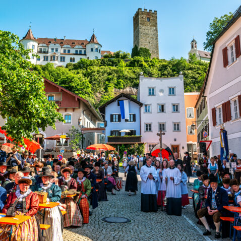 Der Festtag begann mit einem Gottesdienst und einem Festzug vom Marktplatz Neubeuern nach Altenbeuern und in einer Schleife wieder zurück zum Marktplatz, gefolgt von kulturellen Tänzen auf der Bühne am Marktplatz. Diese traditionellen Tänze begeisterten die Zuschauer.