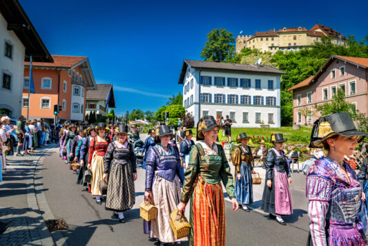 Am vergangenen Sonntag fand in Neubeuern das 21. Treffen der historischen Trachten von Altbayern statt, ausgerichtet vom V.T.E. Edelweiß Neubeuern e.V., bekannt für das Beurer Gwand, eine Tracht aus vergangenen Zeiten, die bis heute lebendig ist. Ursprünglich um 1820 entstanden, wird das Beurer Gwand heute nicht nur vom Trachtenverein getragen, sondern auch im Schiffleutverein wird es von Mitgliedern getragen sowie von der Musikkapelle Neubeuern. Diese Gewandung wird nicht nur zu Trachtenfesten und Repräsentationen der Heimat getragen, sondern auch bei kirchlichen Anlässen oder Familienfeiern wie z.B. Hochzeiten. Um die 100 Neubeurer und Neubeurerinnen von 8 bis 80 Jahren und älter tragen das Beurer Gwand.