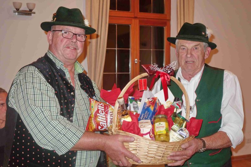 Nach den Neuwahlen war natürlich der Zeitpunkt zum Danke-Sagen. Dabei überreichte Andreas Willmann seinem Vorgänger Jakob Steiner einen Geschenkkorb und einen Gutschein für eine genüssliche Einkehr mit seiner Frau. „Das habt Ihr Euch wahrlich verdient“ – so der neue Vorstand Andreas Willmann. Eingeladen wurde dann noch zum heuer wieder möglichen Jahreskonzert der Wildenwarter Blaskapelle am Samstag 19. November ab 20 Uhr in der Lamstoahalle in Frasdorf (ab 19 Uhr spielen die Zwergerl- und die Jugendkapelle)