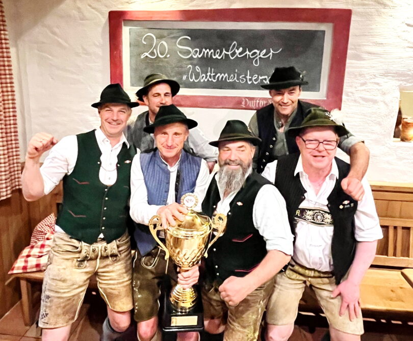 Fotos: Eindrücke von den 20. Watt-Meisterschaften auf dem Samerberg – 1. Die Sieger, das Duftbräu-Team von links Markus, hinten Andi, vorne Sepp, Wasti, hinten Miche, vorne Matthäus