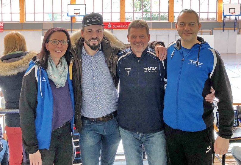 Foto: von links nach rechts: Sandra Flöss (Leiterin Orga-Team), Kerkhoff Tobias (Leiter GS Sparkasse Bad Endorf), Peter Hinterstocker (stellvertretender Jugendleiter), Hermann Maier (Jugendleiter)