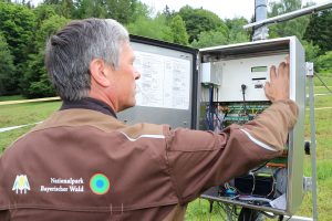 Ludwig Höcker bei der Arbeit an der Klimastation Waldhäuser. (Foto: Gregor Wolf/Nationalpark Bayerischer Wald)