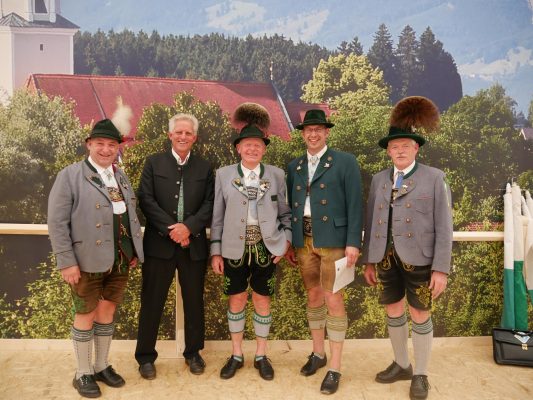 von links nach rechts – Stellvertretender Gauvorstand Michi Hauser, 1. Bürgermeister der Gemeinde Bergen Stefan Schneider, 1. Gauvorstand Peter Eicher, 1. Vorstand des Trachtenvereins Bergen Martin Heigermoser, stellvertretender Gauvorstand Sebastian Gasteiger.