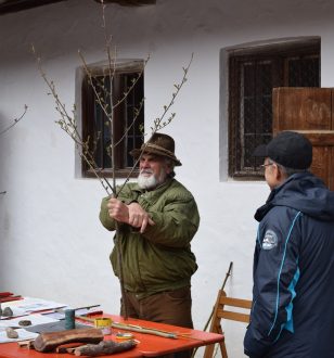 Dafür war in diesem Jahr Richard Bals zuständig. Er führte den Besuchern an mitgebrachten Ästen vor, wie man die Obstbäume so veredelt, dass sie auch langfristig für eine reiche Ernte sorgen. Eine wichtige Erkenntnis für manch einen Besucher: „Äpfel können Sie gut veredeln, und so viele Apfelsorten wie Sie wollen auf einen Baum bringen. Bei Birnen ist das viel komplizierter.“ Auf reges Interesse stießen auch die Informationen des Vereins „VEN – Verein zur Erhaltung der Nutzpflanzenvielfalt“. Er hat es sich zur Aufgabe gemacht, wertvolles Saatgut zu erhalten, und baut deutschlandweit über 8.000 verschiedene Pflanzen an, damit das traditionelle Saatgut nicht verloren geht. Doris Seibt von der Regionalgruppe München-Bayern lud an ihrem Stand die Besucher zu einem anschaulichen Quiz über Samen ein. Auch das Bauernhausmuseum selbst war mit einem Stand vertreten. Franz Lexa und Museumsleiterin Claudia Richartz gaben seltene und bekannte Pflanzen gegen eine kleine Spende ab. Kapuzinerkresse, Färbertagetes, Knoblauchrauke, Süßdolde oder Hopfen – die Besucher hatten hier die Qual der Wahl und konnten sich dabei noch wertvolle Tipps holen. Was tun bei Nachtfrost, der jetzt immer noch droht? Franz Lexa wusste Bescheid: „Die meisten unserer Setzlinge sind schon sehr weit und haben schon Frostnächte hinter sich. Da passiert nichts mehr. Aber Vorsicht bei Tomaten und Paprika – die gehören noch ins Haus!“
