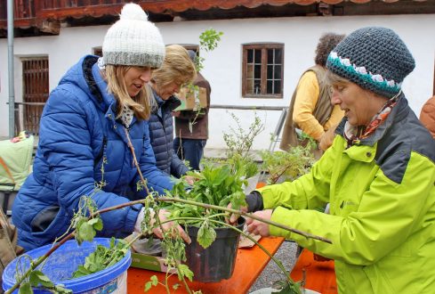 Zum ersten Mal waren Elgard Auerbach und Bernhard Stegmüller dabei, und sie verließen das Bauernhausmuseum vollbepackt mit Pflanzen. „Wir haben unseren Garten frisch angelegt und wollten mal schauen, ob wir hier was finden. Und wir haben wirklich schöne Dinge ergattert, wie etwa unsere Zwiebeln oder das Schöllkraut,“ erzählt Elgard Auerbach. Letzteres helfe gegen Warzen und sei eine Heilpflanze, das hat ihr schon die Großmutter erzählt, und deshalb muss es in den frisch angelegten Garten. Auch Irmi Wagner ist Gärtnerin aus Leidenschaft und kommt jedes Jahr zur Pflanzentauschbörse. Sie hat Gotchibeeren hergegeben und dafür Luftzwiebeln erhalten, außerdem nimmt sie Knoblauch mit heim. „Gärtnern ist eine kreative Arbeit und Erholung. So ein schöner Garten ist auch etwas fürs Auge.“ Viele Zutaten für das Mittagessen ihrer Familie hat sie selbst angebaut. „Dafür bekomme ich hier bei der Pflanzentauschbörse auch immer tolle Tipps von anderen Besuchern oder von Fachleuten. So etwa, wie man den Obstbaum im Garten veredelt.“