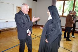 In seiner Begrüßung bezeichnete Dr. Albert Gresser als Vorstand der Diözesangruppe München und Freising des BKU die einmal im Jahr von Dr. Michael Elsen (Wirtschaftsbeirat Bayern, Bezirk Berchtesgadener Land-Traunstein) organisierten Zusammenkünfte als Augenblicke des Zuhörens. In Vertretung von Äbtissin Johanna Mayer OSB, die in diesen Tagen eine Einladung ins Schloss Bellevue von Bundespräsident Frank-Walter Steinmeier angenommen hatte, informierte Schwester Magdalena über die vielen Veränderungen im Klostergut Mitterndorf. „Jahrzehntelang waren dort bis zu 15 Schwestern im Stall und auf dem Feld tätig, heute schätzen wir uns glücklich, dass mit der Björn-Schulz-Stiftung und dank von enormen Spenden in Millionenhöhe 24 Zimmer für 80 Personen beim Irmengardhof zur Verfügung stehen, um schwer angeschlagene Familien zu unterstützen.