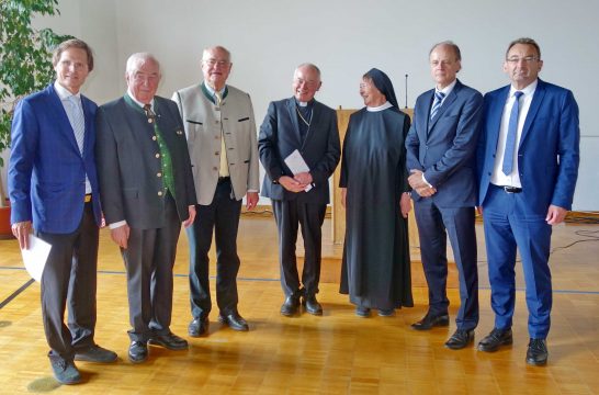 Foto/s: Hötzelsperger – 1. Von links: Dr. Albert Gresser, Vorstand Diözesangruppe München und Freising des BKU, Bayernbund-Ehrenvorsitzender Adolf Dinglreiter, Dr. Michael Elsen, Vorsitzender Bezirk Berchtesgadener Land/Traunstein vom Wirtschaftsbeirat Bayern, S.E. H. H. Weihbischof Dr. Dr. Anton Losinger, Schwester Magdalena, Dr. Hans Schachner, Generalsekretär des Wirtschaftsbeirates Bayern und Martin Choroba, Vorsitzender vom BKU München.