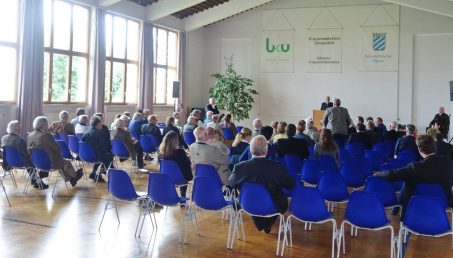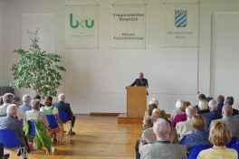 „Der Geist ist es, der lebendig macht!“ – mit diesem Grundsatz begann Weihbischof Dr. Losinger seine Ausführungen und er führte fort: „Vor 250 Jahren waren 70 Prozent der Leute in der Landwirtschaft tätig, heute sind es weniger als drei Prozent, weshalb wir durch die Wissens- und Industriegesellschaft neue soziale Fragen haben“. „Ökonomische Effizienz und soziale Sicherheit haben Deutschland stark gemacht, nun gilt es generationenübergreifenden Zukunftsfragen zu Rente oder Überalterung zu beantworten“, so der Referent, der die ökonomische Schieflage einer überregulierten Republik als Herausforderung für neue Handlungsweisen sowie eine Wirtschaft ohne Freiheit als sinnwidrig bezeichnete. „Die Würde des Menschen ist das Fundament in der Gesellschaft, Niemand darf ins Bodenlose fallen“, so Dr. Losinger, der in seinen weiteren Ausführungen eine kinderliebe Gesellschaft und die Gerechtigkeit zwischen den Generationen als Voraussetzung bezeichnete, um auch fortan ein gutes Zusammenleben zu garantieren. Die anschließende Diskussion leitete Bayernbund-Ehrenvorsitzender Adolf Dinglreiter. Bei seinem Schlusswort zitierte Dr. Michael Elsen den attischen Staatsmann Perikles mit den Worten: „Es kommt nicht darauf an, die Zukunft vorauszusagen, sondern darauf, auf die Zukunft vorbereitet zu sein“. Der Vortragsveranstaltung in der Aula folgte noch eine Heilige Messe im Münster mit Pater Christoph Wolf SJ (Berater der BKU-Diözesangruppe München-Freising) und mit Weihbischof Losinger als Konzelebranten und mit Andrea Wittmann aus Seeon an der Orgel.  Der gesamte Erlös dieser Tagung vom Bund Katholischer Unternehmer und vom Wirtschaftsbeirat Bayern kommt auch in diesem Jahr dem Kloster Frauenwörth zugute.