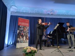 Auch nach der Pause ging es mit Max Bruch (1838 bis 1920) weiter, nämlich vier Stücken für Klarinette, Bratsche und Klavier, opus 83, die Diana Ketler am Flügel, Razvan Popovici, Viola, und Thorsten Johanns, Klarinette in fröhlicher, variantenreicher Ausdruckskraft zusammen musizierten. Den krönenden Abschluss der Matinee bildete die „Rumänische Rhapsodie“, opus 11, von George Enescu (1881 bis 1955), bearbeitet für das hier zu hörende Klavierquartett von dem österreichischen Komponisten Thomas Wally. Mit ansteckender Spiel- und Lebensfreude, harmonisch vollkommen aufeinander eingespielt, musizierten die Musiker des Musikfrühlings in perfektem Zusammenspiel, „wie zusammengewachsen“, das technisch anspruchsvolle Stück virtuos, so dass das Publikum vollkommen hingerissen war und mit nicht enden wollendem Applaus, Trampeln Bravorufen und stehenden Ovationen dankten. So war der Abschied von der beliebten Konzertreihe mal wieder nicht leicht, aber Razvan Popovici tröstete im Ausblick auf den nächsten, 23. Musikfrühling, und versprach, der werde wieder im Mai stattfinden.
