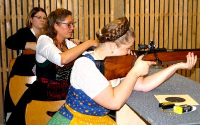 Nicht nur die Gebirgsschützen messen sich im Groß- und Kleinkaliberschießen in jährlichen Meisterschaften auch die Marketenderinnen der Kompanien treffen sich jährlich zum Wettkampf. Die Gebirgsschützenkompanie Prien richtete das diesjährige Schießen auf den Schießständen im Priener Schützenhaus aus. Bataillonskommandant Fritz Kelzenberg nahm die Begrüßung der 35 Marketen-derinnen aus 13 gemeldeten Kompanien des Bataillons Inn-Chiemgau vor und wünschte „Gut Schuss“!