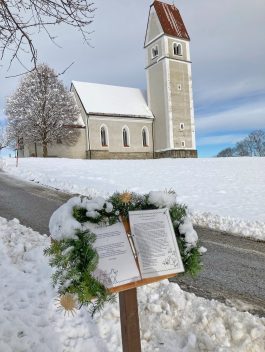 Gerne und gut angenommen wird in diesen Adventtagenn ein besonderes Besinnungs- und Wanderangbot in der Gemeinde Frasdorf:  Zwei junge Mütter und Lektorinnen der Pfarrgemeinde „St. Margaretha“ von Frasdorf haben einen Adventweg für die Zeit vom Montag, 6. Dezember bis Montag, 27. Dezember im Flori-Winkel vorbereitet. Beim rund einstündigen Spaziergang mit herrlichem Bergpanorama erwartet die Wanderer adventliches Gedankengut. Ausgangspunkt ist die Kirche „St. Florian“, dort und in der Wiese unterhalb der Kapelle bestehen Parkmöglichkeiten (es wird gebeten, die Wiesen nur so gering wie möglich zu befahren).