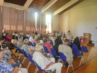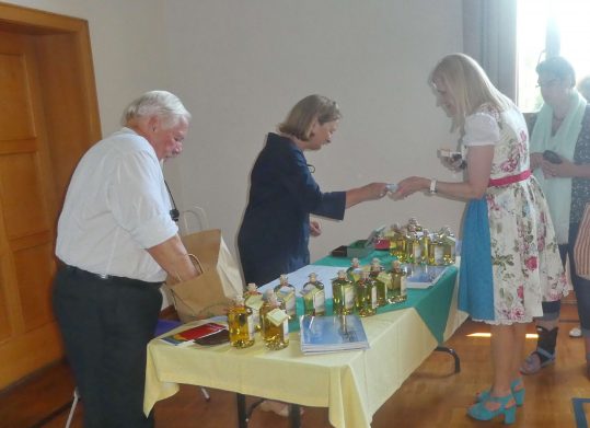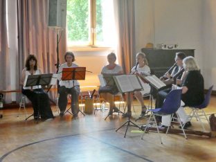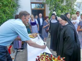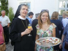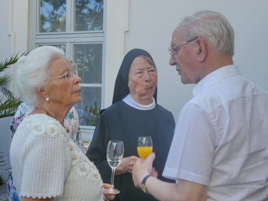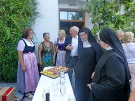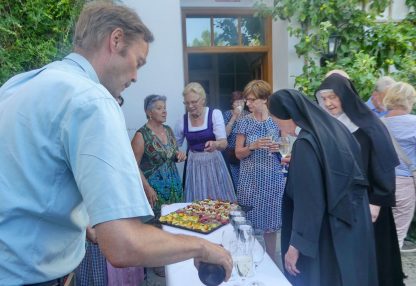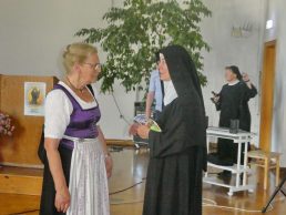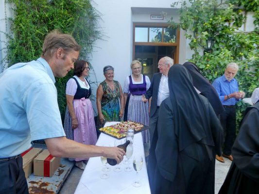 Äbtissin Johanna Mayer, OSB begann ihren Rückblick und Bericht mit dem Motto: „Unsere Tage zu zählen, das lehre uns, damit wir einbringen ein weises Herz“ und sie fügte hinzu: „Wir wollen wach, wachsam und lebensbejahend sein mit Blick auf Christus und dessen Nachfolge. Unser täglich viermal geschehendes Gebet und die Arbeit unserer Hände müssen dafür sorgen, dass wir den Klosterbetrieb auch ohne kirchliche oder staatliche Zuschüsse aufrecht erhalten. Derzeit haben wir 20 Schwestern im Konvent im Alter von 45 bis 84 Jahren sowie zwei Nachwuchskräfte im Ersten-Profeß- und Einkleidungs-Stadium“, sagte die Äbtissin, die für Sonntag, 14. Juli zum Fest der Seligen Irmengard, der Patronin des Chiemgaus einlud (10 Uhr Prozession vom Klosterhof zur Kirche, anschließend Festgottesdienst mit Pfarrer Andreas Münck aus Bernau und unter der musikalischen Gesamtleitung von Kirchenmusiker Bartholomäus Prankl aus Prien und um 15 Uhr Vesper). Anschließend an die Jahresversammlung wurden die Mitglieder noch zu einem Empfang im Kloster-Innenhof eingeladen. Mitglied Franz Stettner aus Kolbermoor, der zum Jubiläum den Klosterlikör in neuer Flasche vorstellen konnte spendierte hierzu sommerliche Erfrischungsgetränke und Alexandra Hötzelsperger übernahm mit ihrer Familie die weitere Bewirtung. Für die musikalische Gestaltung sorgte das Vereinsmitglied Claudia Judex mit ihrem Ensemble. Über die nächsten größeren Bauvorhaben informierte Schwester Elisabeth, darüber berichten wir noch gesondert.