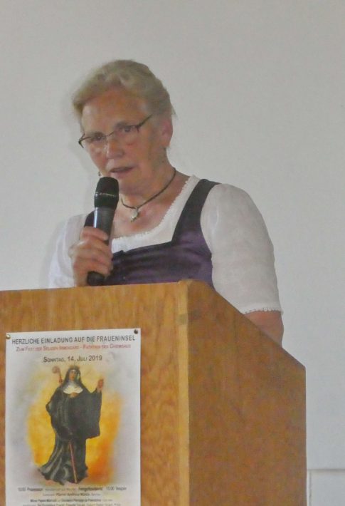 „Als vor 25 Jahren der damalige Priener Bürgermeister Lorenz Kollmannsberger zusammen mit dem ehemaligen Münchner Messe-Chef Gerd vom Hövel die Gründung eines Freundeskreises oder Fördervereins anregte, da war dies der Auflösung des Schulbetriebes nach 150 Jahren geschuldet. Eine neue wirtschaftliche Basis galt es herzustellen und mit dem ehemaligen Landtagspräsidenten Alois Glück, der die Führung des Vereins für 17 Jahre innehatte, hatten wir einen Glücksfall“, so Annemarie Biechl, die seit acht Jahren an der Spitze des Vereins steht. Wie sich das Glück von nunmehr 25 Jahren in Zahlen ausdrückte, konnte Martin Weichselgartner erläutern. Allein durch Beiträge (derzeit 883 Mitglieder bei 27 Neuzugängen im letzten Jahr) und kleine Spenden konnten dank des Vereins über 1,2 Millionen Euro eingenommen werden. Dazu kamen noch große Firmenspenden, die direkt dem Kloster zugute kamen. In den letzten neun Jahren wurden für Baumaßnahmen am und im Kloster fünf Millionen Euro verbaut, 475.000 Euro vom Freundeskreis waren ein Zehntel davon. Sinn und Zweck des Freundeskreises ist aber nicht nur das Finanzielle, sondern auch das Kulturelle. So werden immer wieder Kulturfahrten zu Stätten unternommen, die mit der Geschichte von Frauenchiemsee in Verbindung stehen, für 2020 ist eine Zweitages-Fahrt nach Südtirol vorgesehen. Im heurigen Jubiläumsjahr waren bereits ein hochinteressanter Geschichts-Vortrag von Dr. Bernd Steidl von der Archäologischen Staatssammlung München, ein ausverkauftes Gitarrenkonzert im Schloss Hartmannsberg und für Sonntag, 22. September ist um 15.15 Uhr mit dem Ensemble Hans Berger und seinem Montini-Chor ein Alpenländisches Marien-Oratorium im Münster Frauenwörth geplant (Karten sind zu gegebener Zeit auch auf der neuen Internetseite www.freundeskreis-frauenwoerth.de zu erhalten). „Wichtige Bausteine im letzten Jahr waren zudem das Buchprojekt über den Heiligen Benedikt von Schwester Hanna, der Breitbandausbau-Förderbescheid des Bayerischen Finanzministeriums, die Renovierung des Kloster-Glockentürmchens sowie der Start der elektronischen Klosterpost für Mitglieder, was Dank der Unterstützung von Christina Pfaffinger vom Tourismusverband Chiemsee-Alpenland und von Rainer Nitzsche von den Samerberger Nachrichten ermöglicht wurde“, so die Vorsitzende Annemarie Biechl.