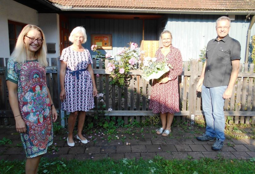 Seit nunmehr 25 Jahren leitet Nicole Westermeyr den Kindergarten „Haus für Kinder“ der Frasdorfer Pfarrei St. Margaretha. Aufgrund der Corona-Pandemie konnte das Jubiläum nicht groß gefeiert werden. Doch Pfarrer Paul Janßen vom Pfarrverband Oberes Priental sowie die Mitarbeiterinnen Regina Haas und Regina Schlemer ließen es sich nicht nehmen, um Nicole Westermeyr zu gratulieren. „Vor 25 Jahren war Pfarrer Alfons Oberbauer ihr Chef, heute es im übrigen durch den Kita-Verbund der Priener Pfarrer Klaus Hofstetter, unermüdlich und mit großem Engagement führte sie den einstmals kleinen Pfarrkindergarten mit zwei Gruppen (die dritte war gerade im Bau) bis heute zum Haus für Kinder mit 5 Gruppen“ – so Pfarrer Janßen in seinen Dankesworten.