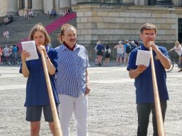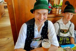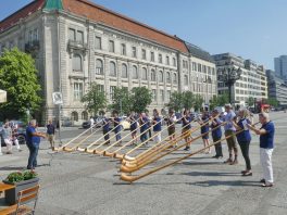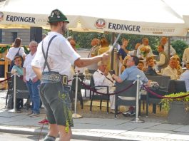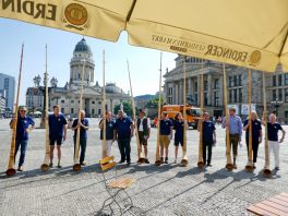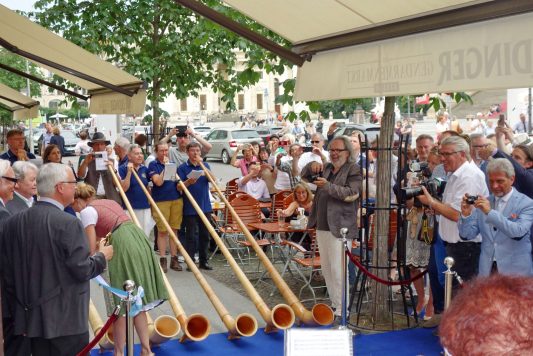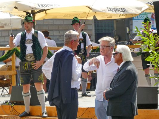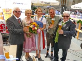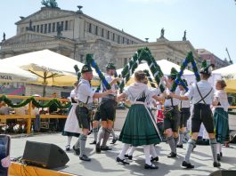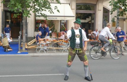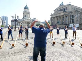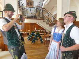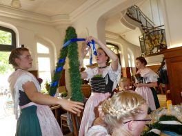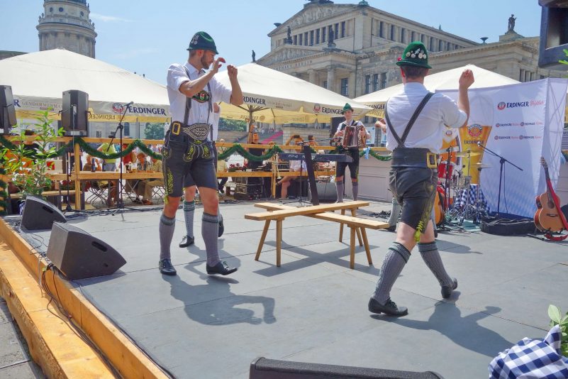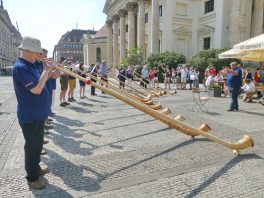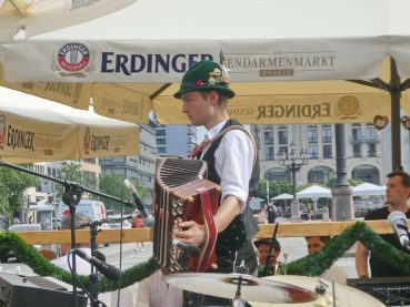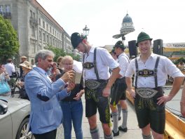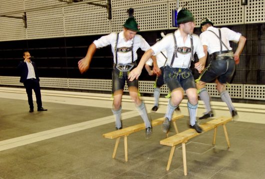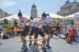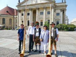 Tagesausflüge sind für gewöhnlich etwas Gemütliches, Gemähliches  und Beschauliches – nicht so für 21 aktive Dirndl und Buam vom Trachtenverein „Almenrausch“ Rossholzen. Die Samerberger waren eingeladen, um an der Eröffnung einer neuen Erdinger-Weißbräu-Gaststätte am Gendarmenmarkt in Berlin mitzuwirken. Um vier Uhr in der Früh machten sich die Plattler, Tänzerinnen, Goaßlschnalzer und Ziach-Musikanten von zu Hause auf den Weg nach Rosenheim, um von dort nach München und dann mit dem ICE-Sprinter in die Bundeshauptstadt zu reisen. Bereits vor 10 Uhr trafen sie am Berliner Hauptbahnhof ein, von dort ging es mit einem Bus und im Rahmen einer kleinen Stadtrundfahrt zum Auftrittsgeschehen. Während des gesamten Tages zeigten sie dem begeisterten Berliner Publikum mit vielen von Brauereibesitzer Werner Brombach eingeladenen Ehrengästen bayerisches Brauchtum. Zum Ende der Auftritte zog dann ein gewaltiges Gewitter auf, so dass aufgrund von Bahn- und Flug-Sperrungen erst einmal die Heimreise verschoben werden musste. Mit dreistündiger Verspätung weit nach Mitternacht wurde dann doch noch München erreicht. Damit die Trachtlerinnen und Trachtler anderntags noch rechtzeitig in ihre Arbeitsstätten aufbrechen konnten, erklärten sich fünf zu Hause gebliebene Vereinskameraden bereit, ihre Freunde in München mit Autos abzuholen. Letztlich endete um 5 Uhr in der Früh in Rossholzen die 25-Stunden-Tages-Reise mit vielen Eindrücken. Reiseleiter und Fahrt-Organisator Markus Schober resümierte den eindrucksvollen Tag, der auf Einladung von Erdinger-Weißbräu-Marketing-Leiter Wolfgang Kuffner zustande kam, mit den Worten: „Berlin war eine Reise wert, die vielen Kontakte, unter anderem mit der Erdinger-Botschafterin, Weltmeisterin und Olympiasiegerin Magdalena Neuner sowie was uns Stadtführer Michael Haenl bei der Rundfahrt zeigte, waren schon enorm und die Reisestrapazen waren es auch wert,  mit dem mitgenommenen Werbematerial konnten wir auch schön für den Samerberg und unsere Heimat werben“.