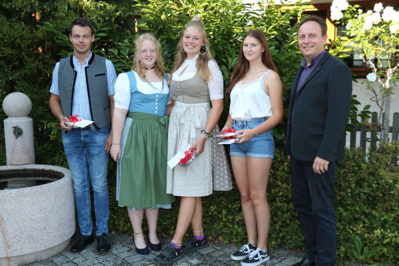 Bürgermeister Daniel Mair überreichte ihnen die Glückwünsche und eine Anerkennung der Gemeinde Frasdorf für ihre hervorragenden Zeugnisse. Magdalena Gasbichler, Franziska Angerer und Lena Buchauer, alle ebenfalls Einserschülerinnen konnten an der Feierstunde mit dem Bürgermeister im Rathaus nicht teilnehmen.