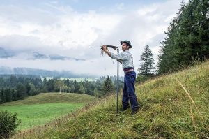 Die Buckelwiesen sind eine Besonderheit des alpinen Raumes wie hier in Krün im Werdenfelser Land. Ihre Pflege bedeutet Handarbeit für die Bergbauern:Bergbäuerinnen.