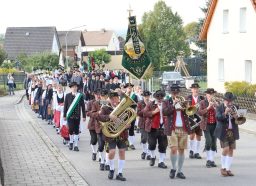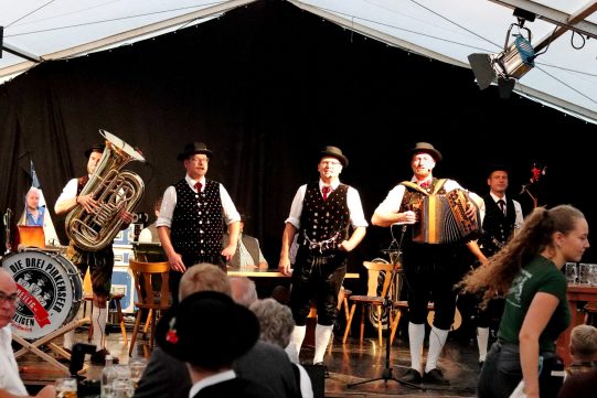 Den Weckruf übernahmen die Böllerschützen aus Kallmünz. Angeführt von der Gautrachtenkapelle Beratzhausen marschierte man gemeinsam zur Marienkapelle, wo Pfarrer Hans Peter Greimel den Gottesdienst zelebrierte. Die Pirkenseer Trachtler bedauerten in diesem Zusammenhang, dass nicht ein einziger Verein aus dem Gaugebiet Ost der Einladung zum Kirchenzug und den Ehrentänzen gefolgt ist. Danach marschierte man zurück ins Festzelt und die 1. Vorsitzende Inge Gollwitzer begrüßte die Gäste, darunter viele Stadträte und Bürgermeister Rudolf Seidl, der die Glückwünsche der Stadt überbrachte: Man sei stolz, dass es diesen Verein im Stadtgebiet gebe und das Vereinsleben hier so gut funktioniere. Der Verein nehme einen hohen Stellenwert in Pirkensee und der Stadt Maxhütte-Haidhof ein. Hier werde kulturelle Arbeit geleistet, die das Kulturleben im ganzen Landkreis in den vergangenen Jahrzehnten intensiv geprägt habe. Über Lied und Tanz, Mundart und Musik und mit wunderbaren Festtrachten zu besonderen Anlässen werde heimatliches Brauchtum vermittelt. Nach dem Grußwort waren die Ehrentänze dran. Den Anfang machte der Trachtenverein Stamm aus Regenstauf. Im Anschluss zeigte die Jugend des Vereins ihr Können. Zuerst spielte die Musikgruppe der Jugend und danach wurde ordentlich getanzt und geplattelt. Der Verein legt großen Wert auf die Jugendarbeit und man investiert dazu auch einiges. Den Abschluss der Ehrentänze bildete dann die Erwachsenengruppe des Vereins. Mit einem gemütlichen Beisammensein, das von der Kapelle “D Spalter” aus Amberg musikalisch umrahmt wurde klang das Jubiläumsfest aus. Eine große Tombola zugunsten der Jugend rundete die Veranstaltung ab. Bereits am Samstag feierten die Musiker des Vereins “Die 3 Pirkenseer Dorfheiligen” ihr 25jähriges Bestehen. Gemeinsam mit dem Trio Schleudergang und der Tegernseer Ziachmusi sowie der Leonberger Jugendblaskaplle wurde bodenständige Volksmusik dargeboten.